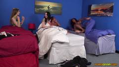 Parece que não há nada melhor do que entrar em um quarto com três garotas excitadas e depravadas que irão chupar seu pau até esvaziar suas bolas!