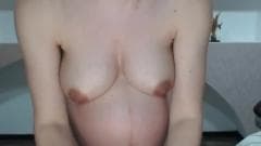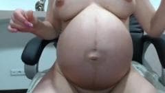 Esta mulher está no último mês de gravidez e seus hormônios estão em alta, então ela toca sua boceta na frente da câmera para você!