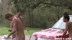 Quando eles começam a lavar o carro, ficam completamente nus.