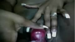 Essa negra tem uma bucetinha enorme e carnuda, né? Aqui a vemos usando um vibrador com um estimulador clitoriano para se masturbar. A não perder.