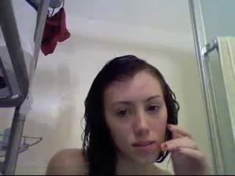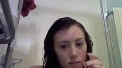 Essa gatinha está empolgada porque está sozinha no banheiro e quer mostrar a você o quão excitada ela está.