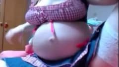 Garota jovem mostra seus grandes peitos de próxima mamãe