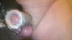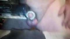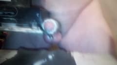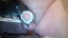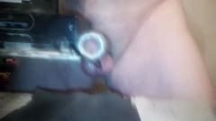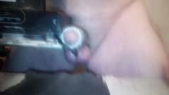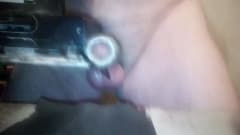O cara fez este brinquedo sexual sozinho com ferramentas de garagem e usa-o para se masturbar. O masturbador de pau funciona e goza generosamente na mesa!