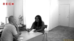 Mahogany Bliss participa desse casting pornô, para montar um pau grande e usá-lo como uma atriz pornô sabe fazer, inclusive no cu.