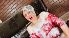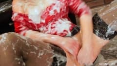 Ela estava no sofá lendo uma revista e descobre um vibrador na parede, que provavelmente jorrava esperma em sua bela bunda quente.