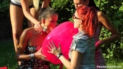 Um vídeo excelente e muito original que mostra um grupo de lésbicas sensuais e escorregadias transando umas com as outras ao ar livre na grama.