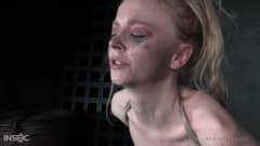 Ela é levada pelos mamilos a se deitar como uma garota safada e é espancada com força. Ela é amarrada e espancada como gosta para atingir o orgasmo.