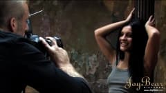 A morena sexy Honey Demon tem uma sessão de fotos em um antigo castelo e o fotógrafo excitado não quer largar a buceta da bela vadia!