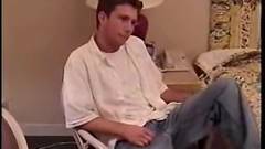 Esse jovem tira um grande pau da calça e começa a esfregá-lo e a masturbá-lo com uma câmera bem focada. Veja como ele está cheio de tesão!