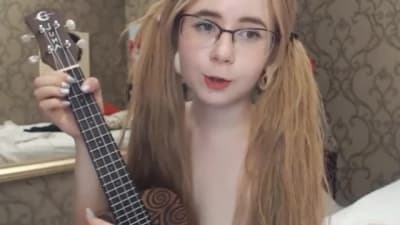 Essa jovem amadora super fofa dança nua na frente da câmera e mostra seu talento tocando violão. Você vai adorar seus pequenos seios naturais.