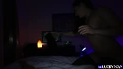Essa mulher é uma especialista em lidar com galos. Esta é tão grande quanto ela gosta. Ela suga e depois lhe dá uma punheta com suas mamas e nádegas.