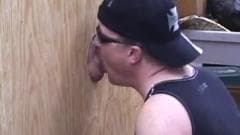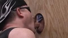 Guy dá Blowjob via buraco de glória para engolir muita porra