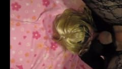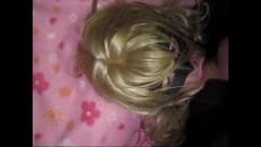 Um homossexual chupando seu próprio pinto com uma peruca loira em roupas íntimas e meias sexy! Ele também se fode no cu sentado num dildo 😮