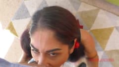 A vadia Sahara Knite fazendo um boquete e acariciando sua xoxota