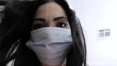 Diana Grace está beijando a bunda do cara e pulando em cima dele. Ela vai colocar sua máscara, para se proteger, já que estamos em confinamento.