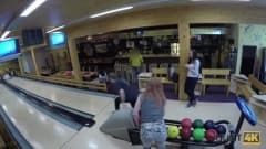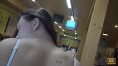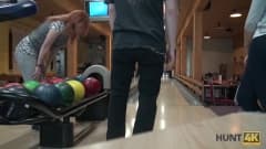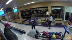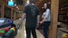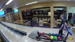 A câmera de vigilância filma essa morena sendo seduzida e penetrada dentro da pista de boliche!