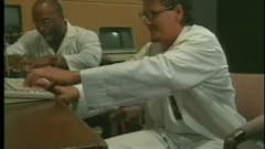 Esta anãa peituda vai ter que transar com dois caras, um preto e um branco. Eles estão aqui especialmente para ela, pelo que ela vai ter o melhor nesta foda.