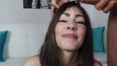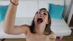 Shayden Rogue, uma jovem puta de olhos verdes, se ajoelha na frente de um cara e chupa seu pau em pov até engolir uma porção de esperma, não perca!