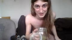 É o primeiro vídeo dele batendo uma punheta. Ele bate forte, goza muito e depois bebe a porra toda!