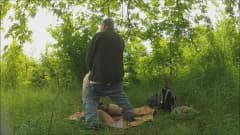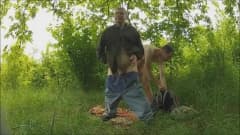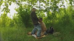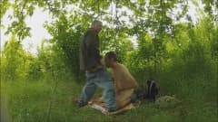 Dois caras - um gordo maduro e um jovem magro foram para a floresta e no espaço verde chupam pintos e se fodem no cu até ejacular, veja!