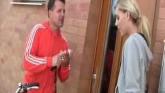 Como todas as putas adolescentes, essa loira quer saber quem conhece o pau do treinador de seus esportes escolares...