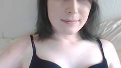 Esta trans novinha e de olhos claros recebe um convidado anônimo, para ajudar a bater a sua punhetinha. Ela adora ser masturbada e ter os seios acariciados
