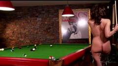 Clanddi H Jinkcego adora coisas grandes, então ela se deita na mesa de bilhar e enfia o taco em sua buceta!