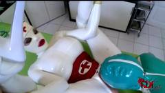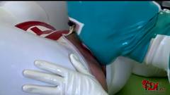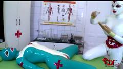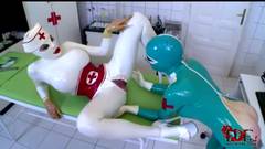 Clanddi se encontra em uma clínica com outra mulher. Ela começa a lamber e a dedilhar a buceta tímida da outra enquanto ambas usam uma fantasia de látex.