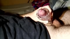 Uma rápida sessão de masturbação com a parte interna de uma Fleshlight deixa esse cara gozando em cima de si mesmo.
