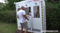 Um careca tarado escolheu essa loira e quer transar com ela no gramado, em cima de uma toalha! Sinta-os desfrutar!