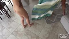 O cara musculado Sean aceita ser fodido com um strapon pela doce Victoria. Então ela vai levar muito em sua buceta também.