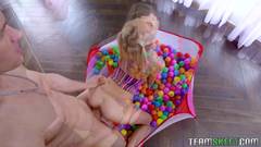 Essa loira linda e sexy mergulha sua buceta nessa piscina de bolinhas para o deleite desse garoto cheio de tesão!