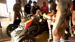 Essa ninfomaníaca loira quer paus grandes e um grupo de negros vai cair em cima dela para agradá-la. Não perca esse gangbang!