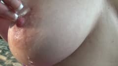 Ela se despiu, vestiu uma lingerie sexy e apertou os peitos grandes enquanto falava com você.