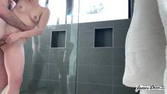 Essa garota safada se junta a esse cara gostoso no chuveiro e claramente não se trata de tomar banho! Trata-se de ser pega no chuveiro!