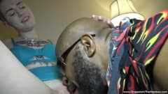 É nesse quarto de hotel que essa vagabunda, tatuada e vadia vai pegar o pênis desse negro musculoso que vai transar com ela.