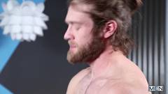 Jimmy Fanz e Colby Keller, começam com algumas preliminares excitantes, incluindo chupadas e lambidas de pênis antes do anal.