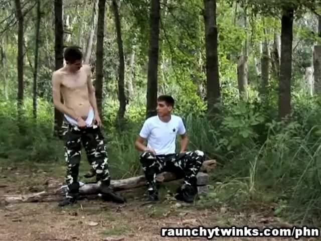 Esses gays militares gostam de chupar uns aos outros no meio da floresta para se excitarem e não param até que haja sêmen