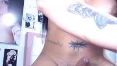 Essa travesti morena se diverte muito se masturbando na frente da câmera e mostrando seus peitos redondos e suculentos