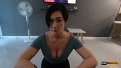 A madrasta se ajoelha e faz um boquete no enteado para excitá-lo e depois dá a ele a sua buceta madura para ser esmagada. Ela recebe muito esperma!