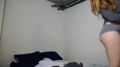 Ashley arrumou seu quarto, sua bunda é tão grande que fica fora de seus calções. Ela vai se despir e expor seu belo corpo enquanto dança.