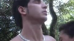 Para este dois amigos um agradável passeio pelo mato deperta seu desejo de fazer sexo no meio da floresta!