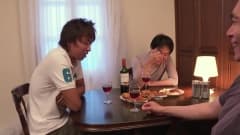 Ela está linda, está fazendo um cosplay vestida de ajudante do Papai Noel. Seus amigos a cercam para comemorar o Natal transando com ela embaixo da árvore.
