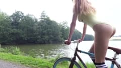 Ela gostou de um bom passeio de bicicleta, mas não conseguiu mais se conter depois de ficar excitada com o passeio de bicicleta.