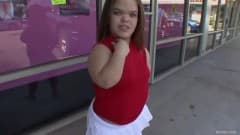 A anã morena conhece um cara na rua e propõe-lhe um pouco de sexo na casa dela. Isso é algo que o cara não pode recusar!