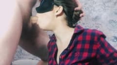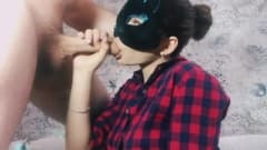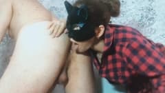 Prostituta com máscara de gato lambe o cu de um cara