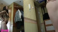 Uma morena sexy de cabelos compridos experimenta várias tangas para deixá-lo excitado com sua bunda firme e redonda.