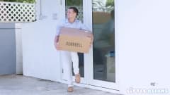 Essa loira asiática sexy recebe uma entrega em casa, de um entregador astuto que acaba transando com ela da melhor maneira possível.