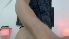 Esta deliciosa transexual morena se diverte na frente de sua webcam penetrando sua bunda com um pau falso!