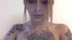 Essa transexual sexy e tatuada fica em todas as posições possíveis até atingir o orgasmo e ejacular.
